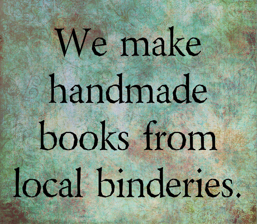 We believe that these stories are treasures for our children’s futures and believe that your stories have value, great or small. Handmade books in a world where physical books are in danger of disappearing to the digital age, dedication to making handmade books from local binderies, is our mission and our purpose. The feel, the smell, the experience of a book is like entering someone’s home. It has many rooms, knick knacks, clocks, old clothes, children’s toys, blankets, and all things old and all things new.
